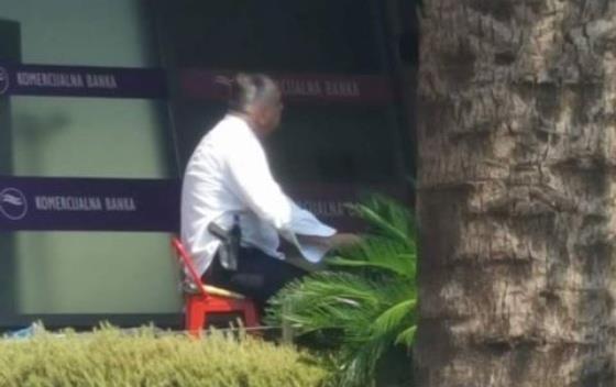 Danas je uslikan dok je sedeo na stolici ispred banke, gde je bankomat koji je dužan da obilazi. Seo je da zapali cigaretu. On je priveden, uzeta je izjava, obavešten je tužilac koji se izjasnio da nema elemenata krivičnog dela.