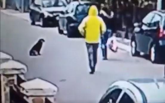 Dok je žena išla ulicom sa kesama u rukama, prikrao joj se lopov u žutoj jakni. Međutim, čim je video da nešto nije u redu, jedan pas, čini se lutalica, skočio je na muškarca. Žena je pala na zemlju, a pas je pojurio lopova koji je odmah pobegao.