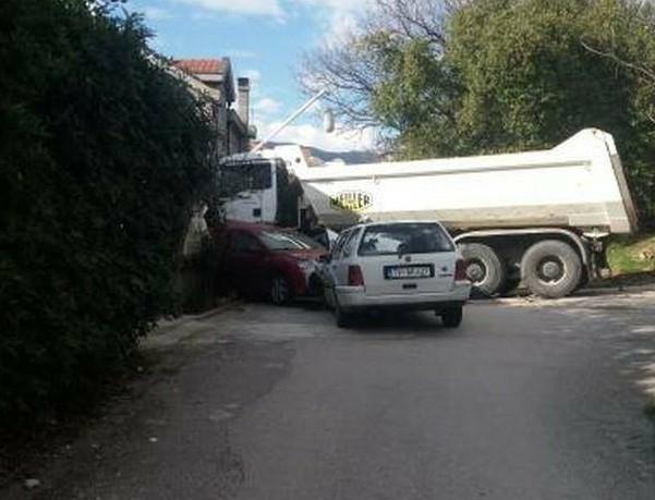Kamion je nastavio da se kreće nizbrdo, udario je nekoliko vozila, a na kraju ulice se zaustavio, teško oštetivši parkirani automobil i oborivši betonski zid i ogradu jedne od kuća.