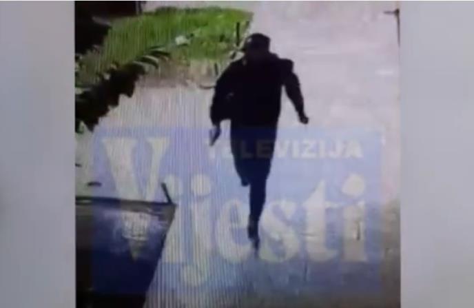 Ubica u tamnoj odeći sa kačketom na glavi i pištoljem u ruci trči za njim. U jednom momentu na snimku se jasno vidi i kako ubica drži uperen pištolj u pravcu mesta gde je pobegao Šaković. Da nije reč o amateru već o profesionalcu koji vešto rukuje oružjem vidi se i po tome što je on u trku za Šakovićem uspeo da repertira pištolj i nastavlja da puca.