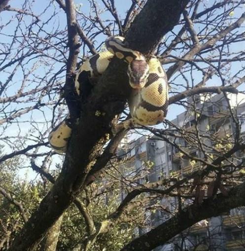 Na društvenim mrežama objavljena je fotografija loptastog pitona, koji je, navodno, viđen danas na drvetu u podgoričkom naselju Pobrežje.