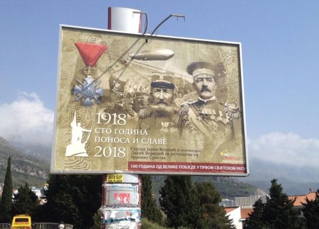 BUDVA - Bilbordi budvanskih opštinskih vlasti na kojima se slavi „100 godina od velike pobede u Prvom svetskom ratu“, kao i svečani ulazak srpske oslobodilačke vojske u Budvu na Mitrovdan 1918. godine, izazvali su proteklih dana mnogo prašine i negodovanja među režimskim medijima i organizacijama u Crnoj Gori.