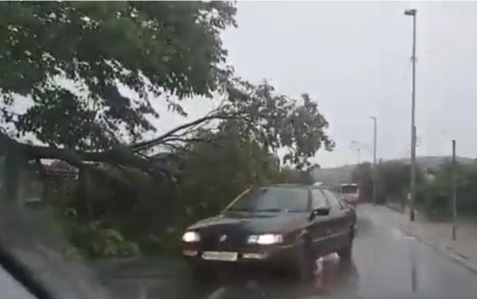 Kišna zavesa u Podgorici otežavala je saobraćaj, pa su se u Glavnom gradu stvorile gužve. Olujni vetar oborio je drveće, koje je uništilo nekoliko automobila.