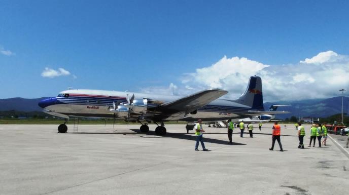 Lokalni mediji su objavili da je jedini "DC- 6" koji trenutno krstari planetom sleteo na tivatski aerodrom iz Beča i da je to bio njegov prvi zvanični dolazak u Crnu Goru.