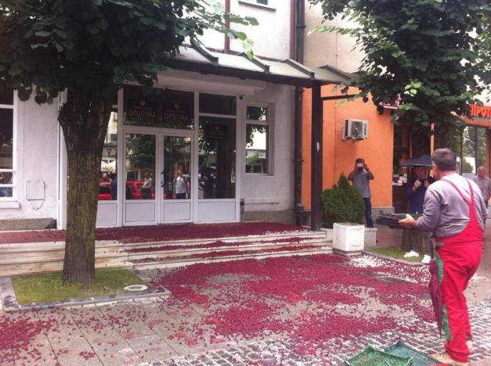Više bjelopoljskih malinara, u znak protesta zbog prestanka otkupa maline, prosuli su danas u 14 časova više stotina kilograma malina ispred zgrade Opštine.