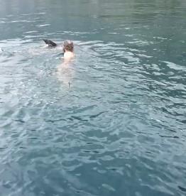 Njih često snima i moreplovac Ivan koji sa svojim brodićem krstari po zalivu. U pauzama često zna da se poigra sa svojim morskim drugarima, pa je tako juče snimak njihovog druženja obišao društvene mreže.