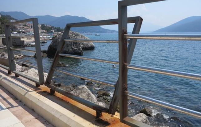 HERCEG NOVI - Mladić i devojka iz Herceg Novog pali su na stene kada su se naslonili na ogradu pored šetališta koja je pukla jer je bila trula.