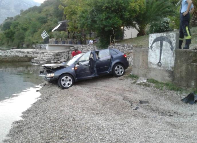 Iz još neutvrđenih razloga "audi" je sleteo sa puta u blizini popularnog plažnog bara i nakon tumbanja niz strminu, zaustavio se u šljunku plaže između bara i obližnje crkvice Gospa od Snijega, na samoj ivici mora.