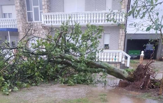 Jak vjetar i kiša oštetili su i plastenike u selu Vranj, u blizini Tuza. U istom mestu vetar je čupao i drveće iz korijena.