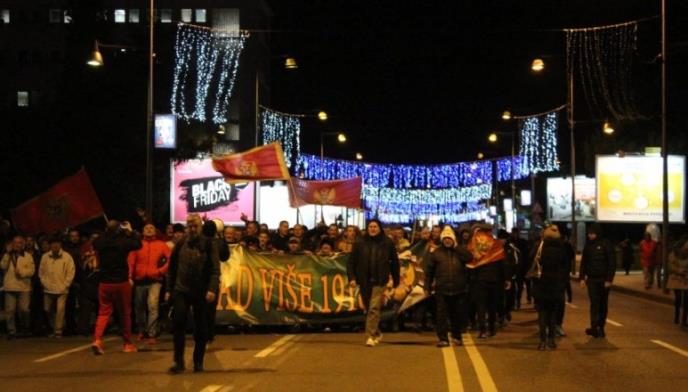PODGORICA - U Podgorici je večeras održana protestna šetnja pod sloganom "Nikad više 1918.", koju je organizovala nevladina organizacija "Dukljani", sa čijeg skupa je poručeno da se "više nikad ne sme desiti da iko u Crnoj Gori slavi izdaju Crne Gore".