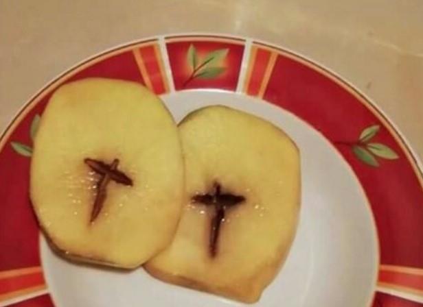 Iako je jasno da se radi o trulom delu krompira, on je bio ubeđen da je to znak od samog Boga.