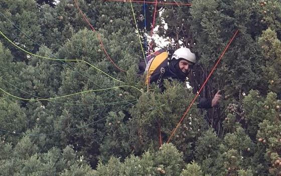 Paraglajderista Ž. R. (55), koji je uzleteo sa Brajića, pao je u Miločerskom parku, gde ga je drvo zadržalo i ostao da visi.