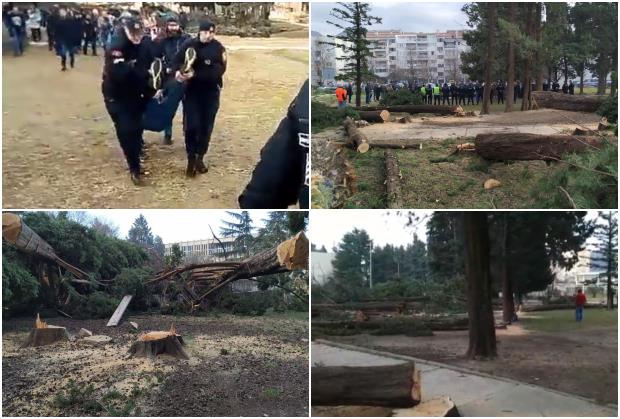 Veoma brzo su se tu okupili nezadovoljni građani. Policija je morala da interveniše i neke građane koji su pokušali da spreče seču drveća je iznela iz dvorišta.