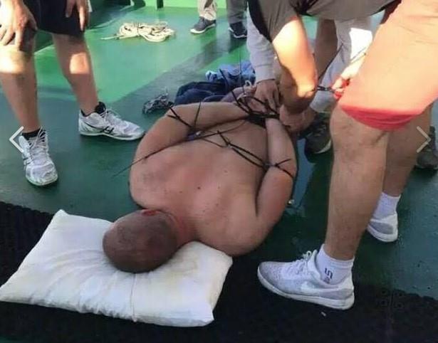 Posada ga je vezala i smešten je u brodsku kabinu gde čeka da ga predaju brazilskoj policiji.