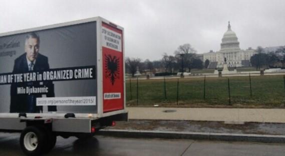 Kamion sa natpisom „Upoznaj predsednika Crne Gore. Čovek koji je u 2015. godine najviše doprineo promovisanju organizovanog kriminala i korupcije” .Kamion je bio parkiran u blizini Bele kuće, Kongresa, Stejt departmenta, crnogorske i ambasade EU u Vašingtonu, navode podgoričke Vijesti.