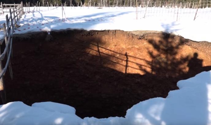 Meštani koji su bili u vreme događaja u neposrednoj blizini tvrde da je došlo do podrhtavanja tla, a zatim su čuli huk vode. Razlog stvaranja duboke rupe nije poznat. Meštani kažu da nikada na ovom području, nije bilo sličnih pojava.