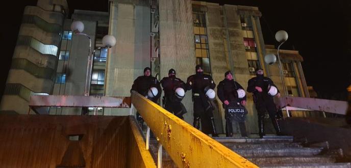 Deo okupljenih je ispred zgrade RTVCG pobacao toalet papir, a sedište te medijske kuće je obezbeđivala policija.