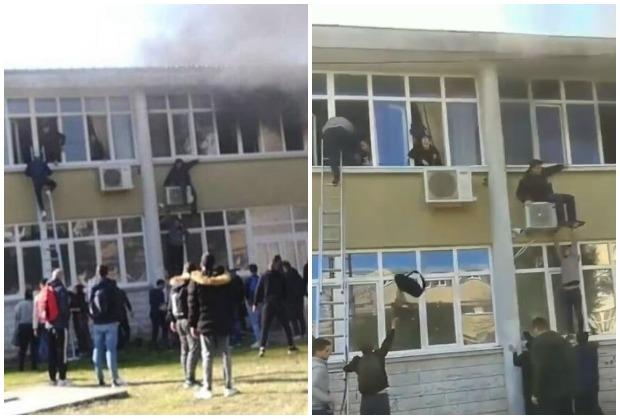 Na snimku koji je objavljen na Instagram stranici Podgorički vremeplov može se videti kako su učenici iskakali kroz prozore.