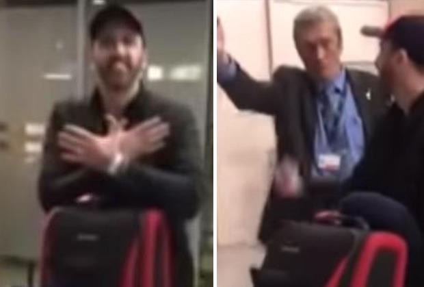Naime, sve je to kamerom mobilnog telefona snimila njegova rođaka koja ga je čekala na aerodromu. On je odmah po preuzimanju prtljaga pokazao dvoglavog orla, a radnik mu je pokazao rukom ka izlazu i rekao "Nema toga ovde, ajde, pa ćeš to tamo!".