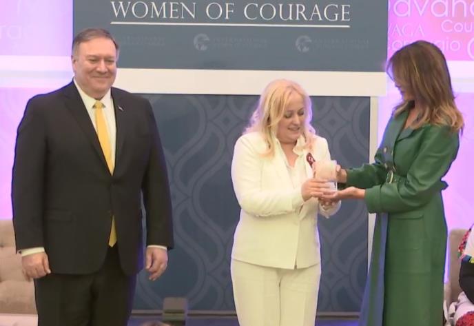 Oliveri Lakić nagradu su uručili prva dama SAD Melanija Tramp i američki državni sekretar Majkl Pompeo.