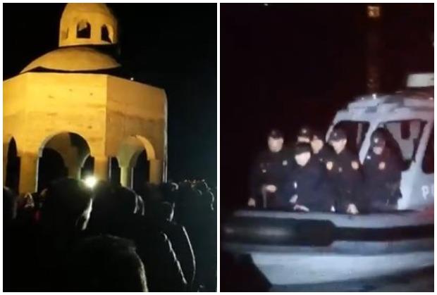 Predstavnici policije pozvali su okupljeno sveštenstvo i vernike koji su stajali oko krstionice da se raziđu, jer "ovo je teritorija Crne Gore i treba da se uklonite".