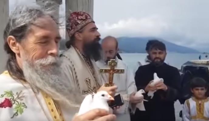 Povodom hrišćanskog praznika - Blagovesti, sveštenstvo i vernici, koji danonoćnim molitvama čuvaju krstionicu od rušenja, pustili su u nebo jato belih golubova.