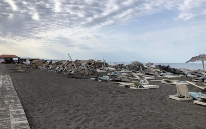 VETAR NAPRAVIO HAOS U ULCINJU: Nosio krovove i stabla, a od suncobrana na plaži nije ostalo ništa! Ni ležaljke nisu više u upotrebi (VIDEO)