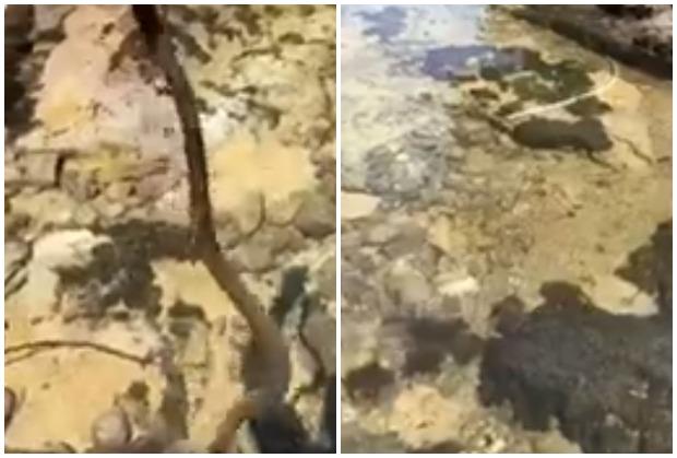 Na Fejsbuk stranici Podgorički vremeplov osvanuo je snimak na kome se vidi kako je jedan muškarac iz vode izvukao zmiju.