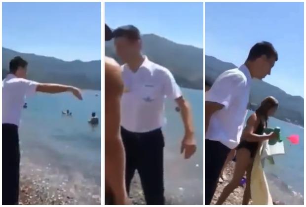 ALO, MIČI TE STVARI SA PLAŽE I IZLAZI IZ VODE: Crnogorski konobar zavodi red među gostima, nije poštedeo NI RUSE! (VIDEO)