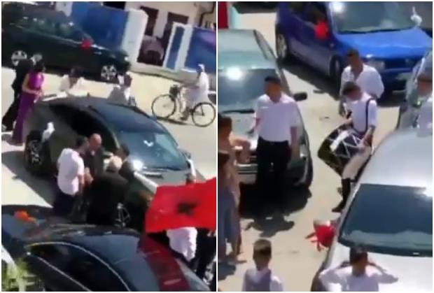 Sudeći po zastavi, radi se o albanskim svatovima, a osim tradicionalnih bubnjeva, čuli su se i kalašnjikovi. Jedan od okupljenih je ispucao rafale.