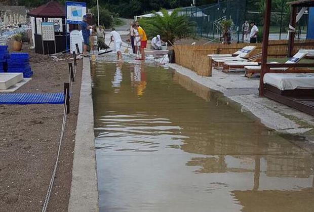 Hotelska kompanija i njeno ljudstvo od sinoć su na nogama, fekalije plivaju stazom, ušle su u plažni bar, a potoci se slivaju na plažu, pišu Vijesti.