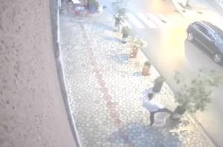 U jednom trenutku je odlučio da šutne saksiju, pa se oteturao do zida zgrade. Iznerviran, vratio se i gurnuo drvo koje je potom palo nasred ulice.