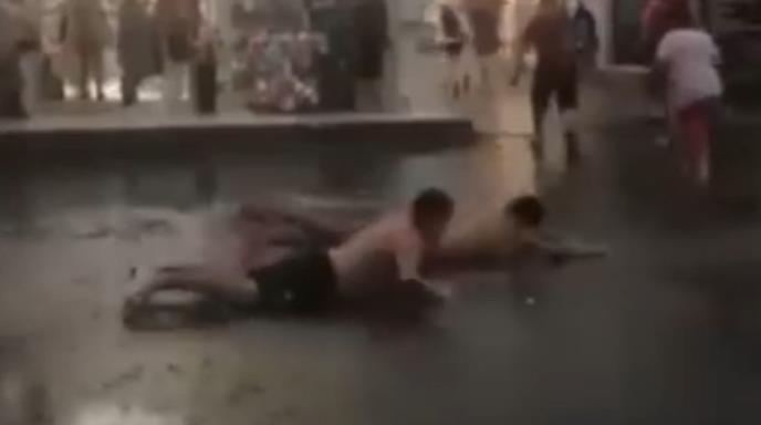 DOK JE U CRNOJ GORI KIŠA LILA KAO IZ KABLA, MLADIĆI REŠILI DA SE ZABAVE: Počeli da plivaju ulicom, prolaznici ih u čudu gledali! (VIDEO)