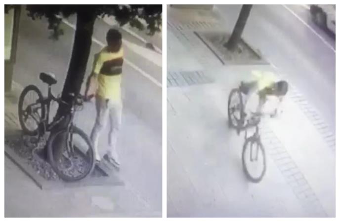 Na snimku koji kruži društvenim mrežama vidi se kako lopov u Podgorici, usred dana i nikad ležernije krade bicikl koji je bio parkiran pored drveta na trotoaru.