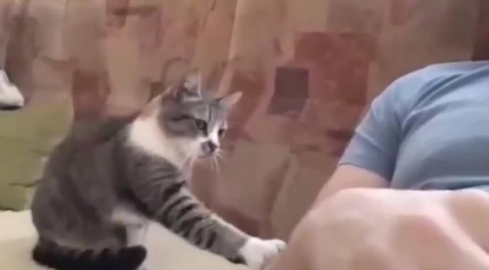 "Ne pričam sa tobom. Neću da se mirimo. Nemoj da me diraš. Bezobrazan si bio i neću da te diram više. Džabe me diraš, nemoj da me diraš, ljut sam", govorio je vlasnik mačora koji ga je netremice gledao u oči, s vremena na vreme pokušavajući šapom da ga pomazi.