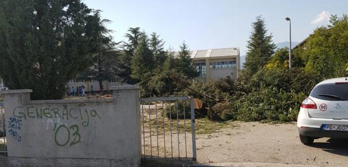 U dvorištu Osnovne škole "Njegoš" u Spužu posečeni su decenijama stari čempresi.