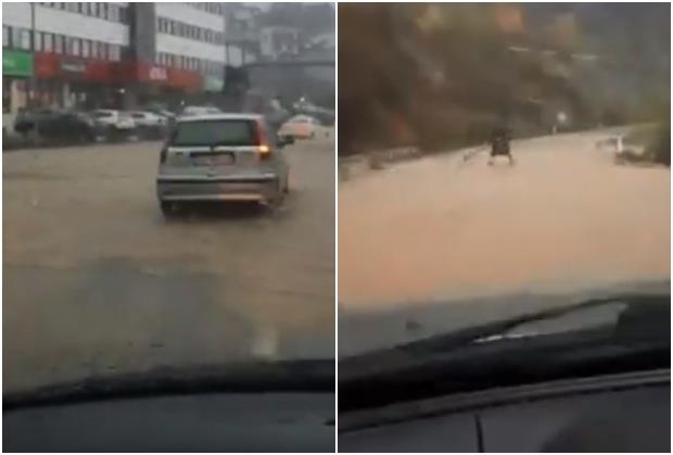 Osim toga, na snimcima se vidi jaka kiša i poplavljene ulice u Mojkovcu. Dom zdravlja je u tommestu zbog havarije sa osiguračima ostao bez struje.