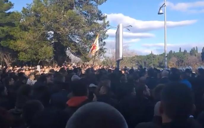 U toku blokade, dok sa jedne strane stoji verujući narod zajedno sa sveštenstvom a na drugoj policijski službenici koji ne dozvoljavaju prilazak Skupštini Crne Gore, u Nemanjinom gradu, na ruševinama, razvila se trobojka, prenosi in4s.
