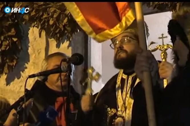 Arhimandrit Boris Bojović iz nekanonske crkve u Crnoj Gori, CPC, imao je mali incident, i to baš sa zastavom Crne Gore, kada ga je "napala" tokom besede.