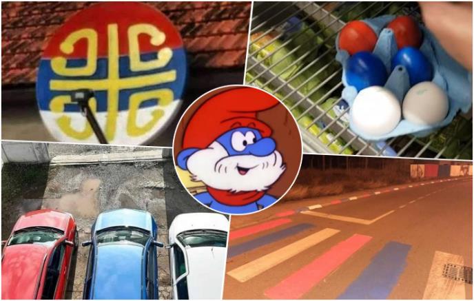 HOĆE LI VELIKOG ŠTRUMPFA ZABRANITI U CRNOJ GORI ZBOG SRPSKIH BOJA: Kad se inat i humor spoje, trobojka niče širom CG!