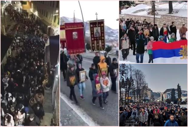 Na litiji koju je organizovala Eparhija mileševska okupio se i veliki broj građana Pljevalja, koji su tokom molitvene šetnje skandirali "Ne dam o svetinje" i "Ustala je Crna Gora svetinja se branit" mora."