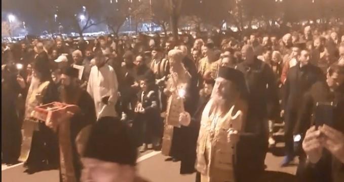 Litiju u Podgorici predvodi crnogorski mitropolit Amfilohije. Ispred Hrama Hristovog vaskrsenja i večeras se okupilo na desetine hiljada ljudi.