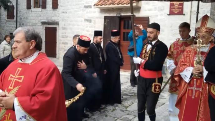 Dok su hiljade Bokelja bili u litiji prema manastiru Podlastva, raspopi iz NVO CPC bajali su procesiju sa moštima Svetog Tripuna koju je predvodio Rok Đonlješaj, apostolski upravitelj Kotorske biskupije