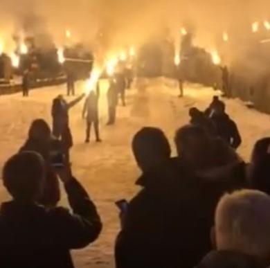 Snega je bilo svuda, temepratura u minusu, a oko manastira pobodene baklje. Mnogi okupljeni su u rukama držali baklje.