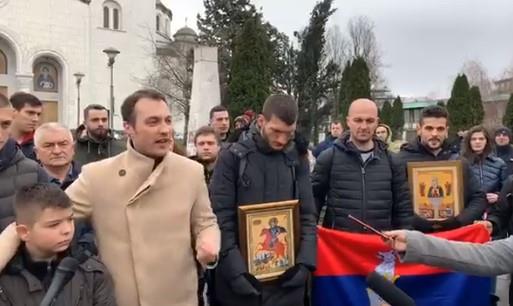 Oko 30 ljudi okupilo se ispred Hrama Svetog Save da isprati hodočasnike.