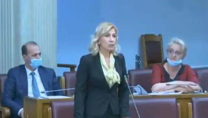 Ona je naime za govornicom crnogorskog parlamenta izgovorila "da je jedna od tačaka Podgoričke skupštine 1918. bila spaljivanje moštiju Svetog Petra Cetinjskog i Vasilija Ostroškog".