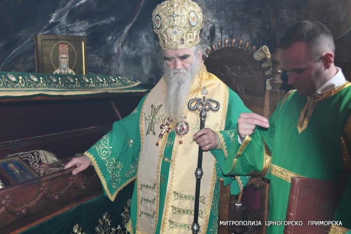 “Sveti Vasilije, jedino u tebe imamo nade. Imali smo i imamo i sada da ćeš ti urazumiti bezumnike, bezumnu vlast Crne Gore koja u ovom trenutku skrnavi tvoj sveti ćivot, da ih urazumiš ako ima mogućnosti da budu urazumljeni. Oni se klanjaju lažnim idolima, lažnim božanstvima poričući Boga ljubavi, ljubavi prema Bogu i ljubavi prema bližnjima”, kazao je Mitropolit crnogorsko-primorski.