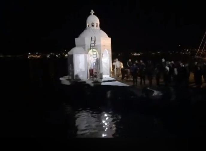 Okupljeni građani poručili su juče da će tu ostati tokom cele noći kako bi sprečili moguće rušenje krstionice koja je podignuta na obali mora u manastiru.