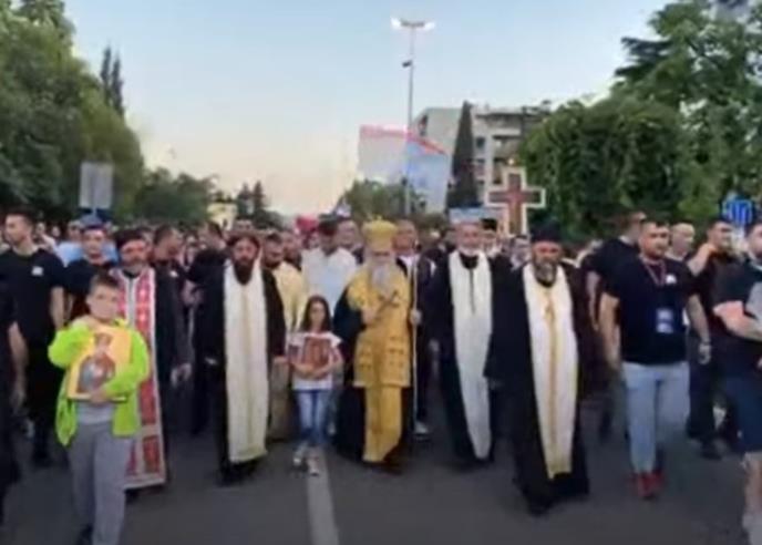 Osmogodišnja devojčica Una Rajović, koja je postala jedna od junakinja litija u Crnoj Gori svoj krsni hod sa sestrom i roditeljima nastavila je nakon molebana u Sabornom hramu Hristovog vaskrsenja ulicama Podgorice.