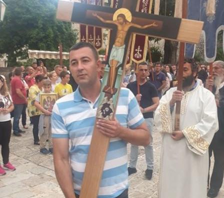 On je, kako se navodi, vratio značku i razdužio uniformu, a potom stao na čelo litije noseći časni krst.